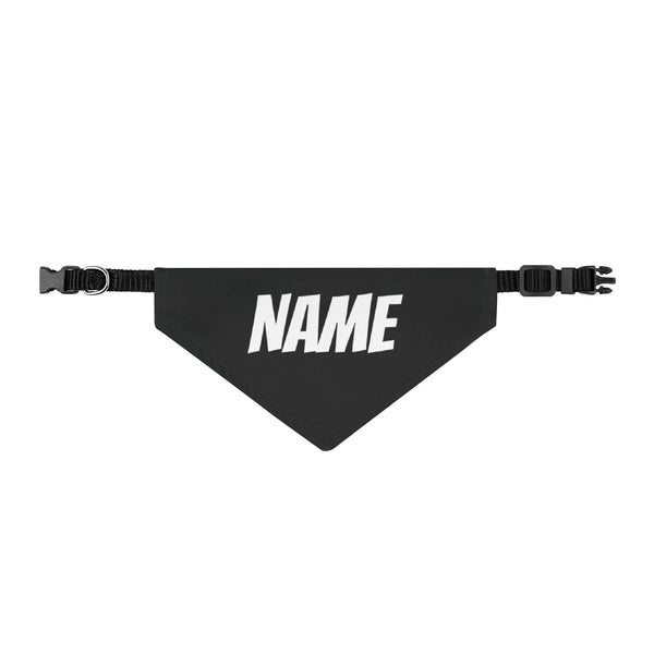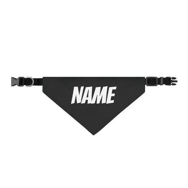 Personalized Clip-On Pet Bandana — Custom White Name Script Black Material