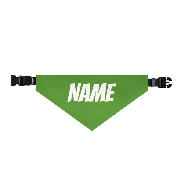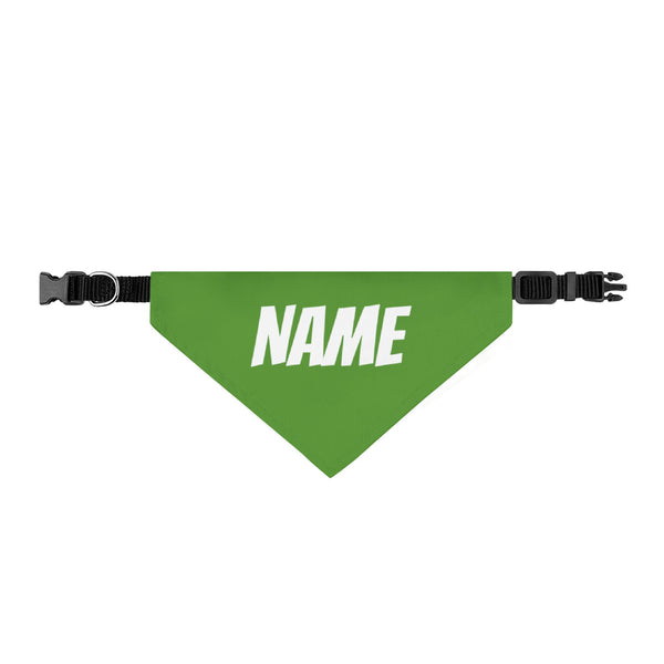 Personalized Clip-On Pet Bandana — Custom White Name Script Green Material